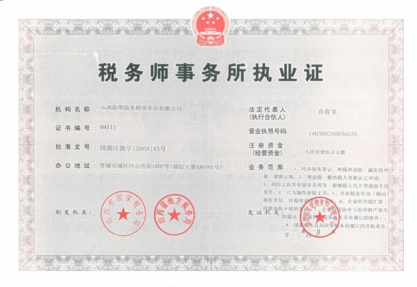 稅務(wù)師事務(wù)所登記證