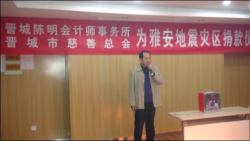 2013年4月28日下午三時(shí),陳明集團(tuán)會(huì)議室里愛意濃濃,正在舉行為雅安地震捐款獻(xiàn)愛心活動(dòng),此次捐款活動(dòng)我們有幸請(qǐng)到了晉城市慈善總會(huì)陳副會(huì)長(zhǎng)光臨并作了重要講話,表示一定將陳明集團(tuán)全體員工的愛心送到雅安同胞手上。