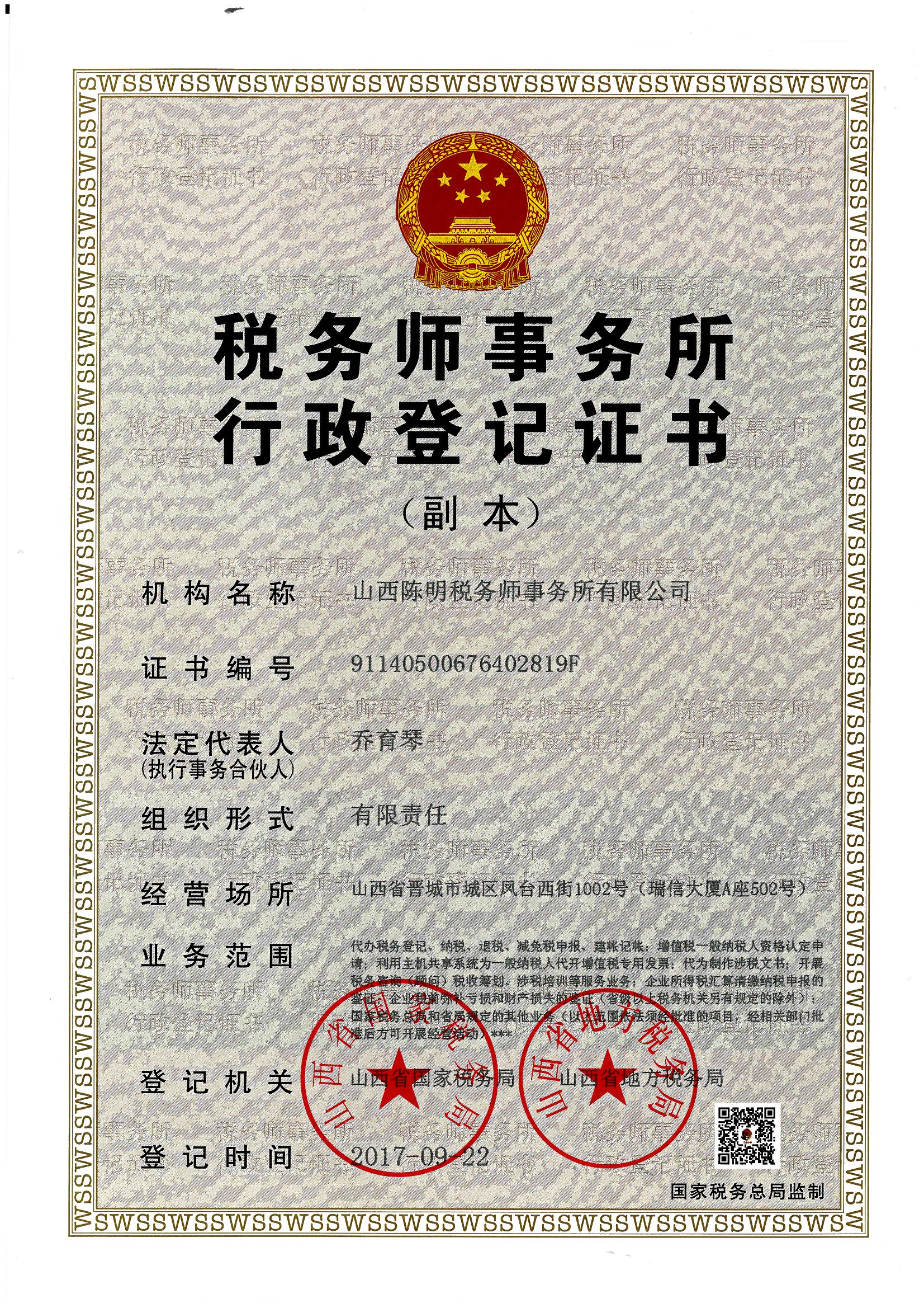 祝賀山西陳明會計師事務所有限公司獲山